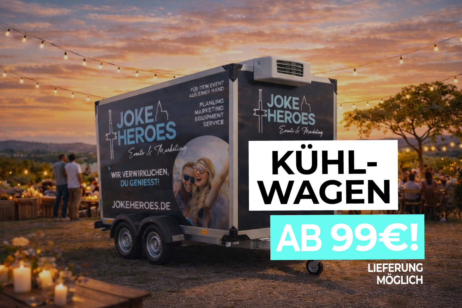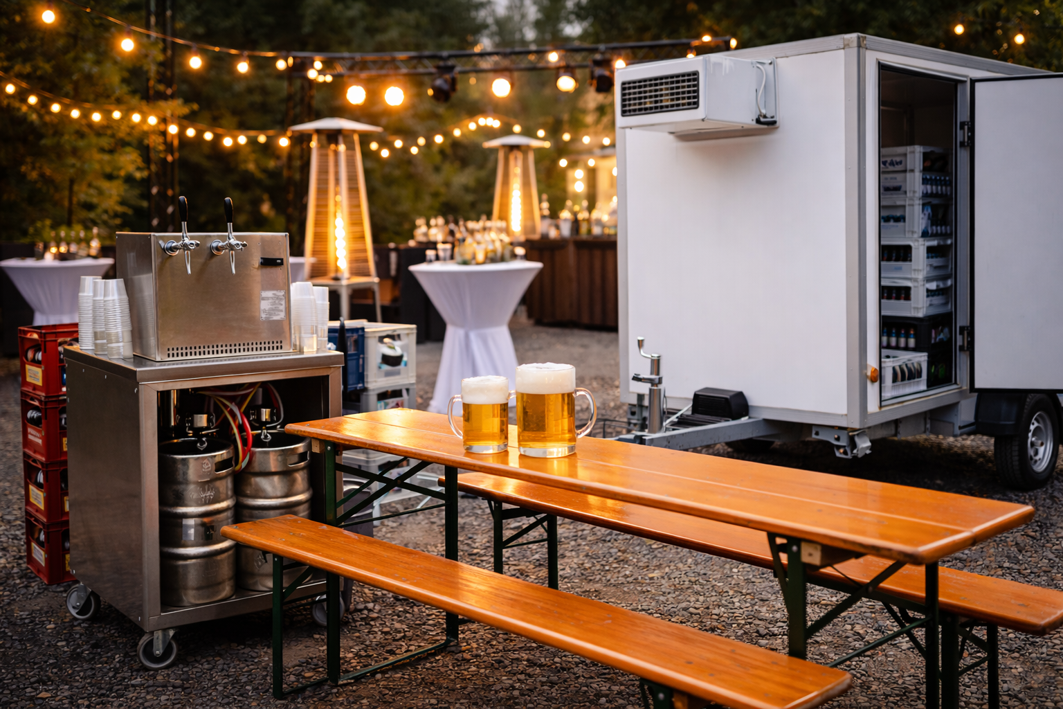 Ob Gartenparty, Hochzeit oder Firmenfest – unser Kühlanhänger sorgt dafür, dass Getränke und Speisen zuverlässig kalt bleiben.